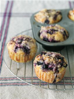 Gently stir berries into batter and fill muffin cups to the top. Baking step: Bake 20 minutes. Let cool 5 minutes. Remove from muffin tin and cool on baking rack.